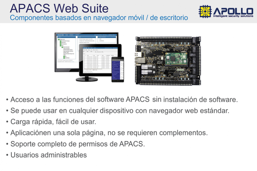 Utilizando ASP con el software APACS-de Apollo se abre un nuevo perfil de integraciones, funcionalidades claves, enrrolamientos, Mustering, manejo avanzado de usuarios, gestión de visitas, Apacs Web Suite y Android.