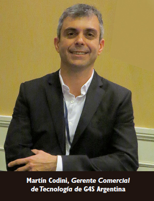 Martín Codini, Gerente Comercial de Tecnología de G4S Argentina explicó: "Somos una empresa con más de 40 años en Argentina. Brindamos los servicios tradicionales de seguridad: guardias, custodias móviles, seguridad VIP, y también ofrecemos todos los servicios vinculados a la tecnología: servicios de monitoreo, alarmas, rastreo satelital de vehículos, especializándonos en la integración de tecnología de seguridad electrónica: control de accesos y visitas, videovigilancia, detección de incendios e intrusión, como asimismo, sistemas de automatización".