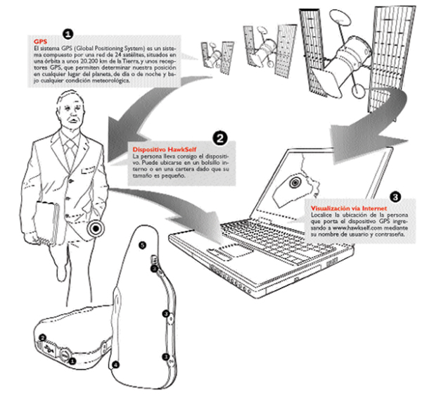 Es un dispositivo portátil que se posiciona geográficamente mediante la tecnología GPS, reportando su ubicación geográfica al DataCenter de Hawk en forma periódica de acuerdo a los intervalos elegidos por el usuario. La información de posición recibida en el DataCenter se muestra en un mapa digital y puede ser visualizada vía Internet por cualquier persona autorizada a tal efecto.