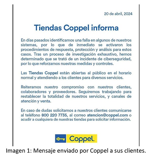 En abril de este sucedió un ciberataque que tuvo como víctima a la cadena mexicana de tiendas Coppel y que afectó a 1.800 tiendas en todo el país, que vieron diezmada su operatoria por un periodo de tres meses, según confirmó El Financiero. El saldo negativo de este periodo de inactividad (con cierres de sus tiendas en línea y la imposibilidad de procesar transacciones en sus tiendas físicas) significó para la empresa una pérdida cercana a los $15 millones de dólares en ingresos.