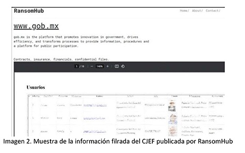 La Consejería Jurídica del Poder Ejecutivo Federal (CJEF) fue una de las víctimas del grupo RansomHub, ataque que tuvo lugar el 15 de noviembre y culminó con el secuestro de más de 300GB de información, entre contratos, presupuestos e información de sus funcionarios. Como prueba del ataque, el grupo publicó un contrato de lineamientos para el alquiler de inmuebles utilizados por la Consejería Jurídica. La confirmación sobre este incidente llegó por parte de la propia presidenta mexicana, Claudia Sheinbaum, quien afirmó: “Me van a entregar un informe al respecto”.