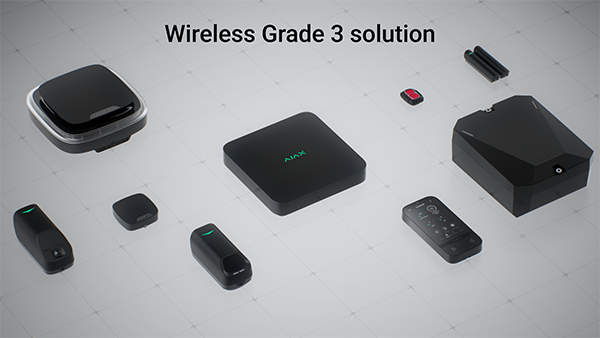 - La alta seguridad ahora es inalámbrica. El equipo de Ajax ha desarrollado el primer sistema inalámbrico de protección contra intrusiones del mundo certificado conforme a la norma EN 50131 (Grade 3). Esto se traduce en una instalación más rápida, flexible y rentable, con un rendimiento que marca la diferencia. La solución incluye todos los dispositivos necesarios para proteger emplazamientos de alto riesgo, con comunicación facilitada por Superior Jeweller, una tecnología de radio de mayor alcance, resistente al sabotaje y encriptada.
